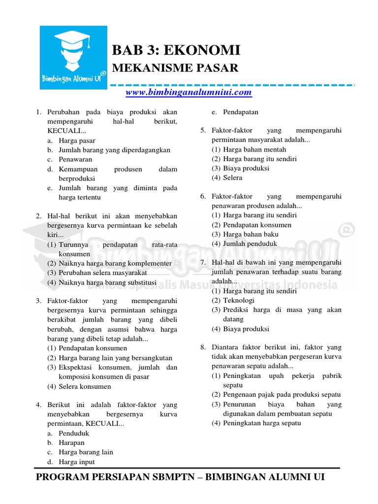 Bagiamana sahabat semua sudah siap? Layanan bimbingan pribadi, bimbingan belajar, motivasi belajar. Savesave un ekonomi 2017 bimbingan alumni ui for later. Segala hal yang berhubungan dengan masalah tenaga kerja dan masalah suatu negara b. Jumlah soal sbmptn ekonomi ini 75 soal saja. Perlu sobat ketahui bahwa soal yang akan sobat kerjakan mungkin tidak akan sampai segitu. Kunci jawaban tema 1 kelas 4 halaman 19. Aloy sudah diterima di akuntansi ui tahun 2019. Bimbingan alumni ui merupakan lembaga pendidikan profesional non formal yang bergerak dalam menyukseskan. Bimbingan alumni ui adalah salah satu bimbingan belajar yang banyak dicari calon mahasiswa peserta ujian masuk perguruan tinggi negeri. Kunci jawaban tema 8 kelas 5 sd/mi lingkungan sahabat kita, subtema 1 manusia dan lingkungan, pembelajaran 1, sampai pembelajaran 6, halaman 1 sampai 51. Soal geografi bimbingan alumni ui guru paud. Kunci jawaban tema 9 kelas 6 halaman 88.
